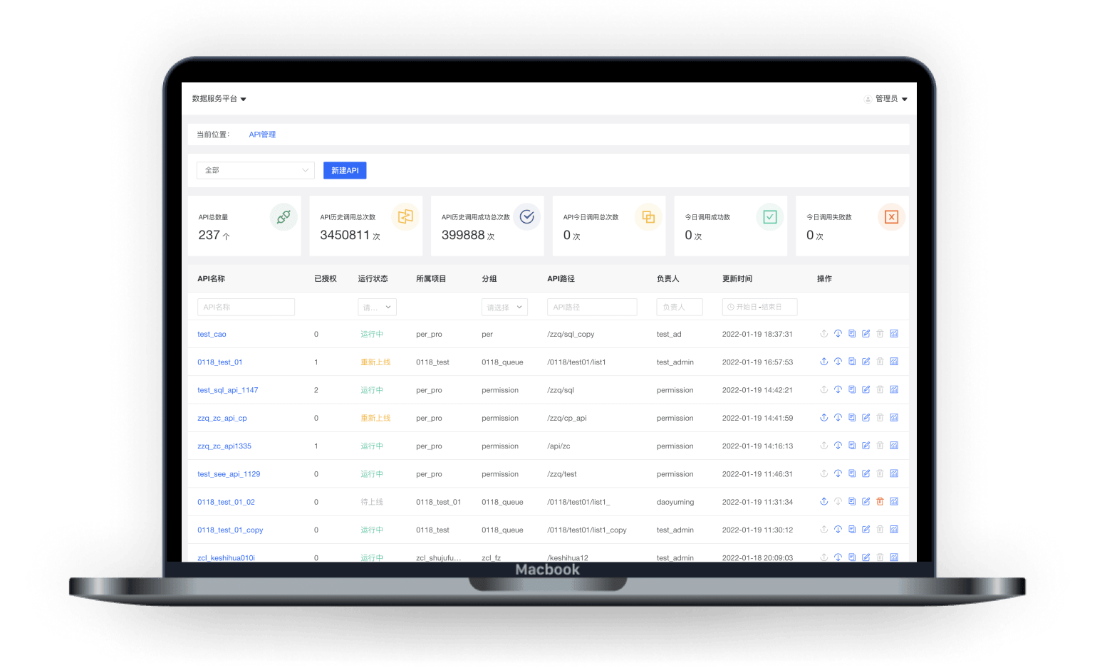 A data service publishing center that seamlessly connects with business production systems, solving the last-mile problem of data usage. Supports quick creation of service APIs through SQL and drag-and-drop methods, providing complete API lifecycle management, including creation, maintenance, publishing, operation, monitoring, and decommissioning.