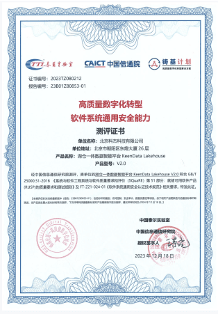 Officially launched KeenData Lakehouse 2.0, achieving breakthroughs in multiple big data technologies including lake-warehouse integration, multi-model management, and Data Fabric. Combined with practical implementation experience in large organization clients, formed enterprise data capability building methodology, realizing best practices in enterprise data foundation construction through "advanced products" + "practical methodology".