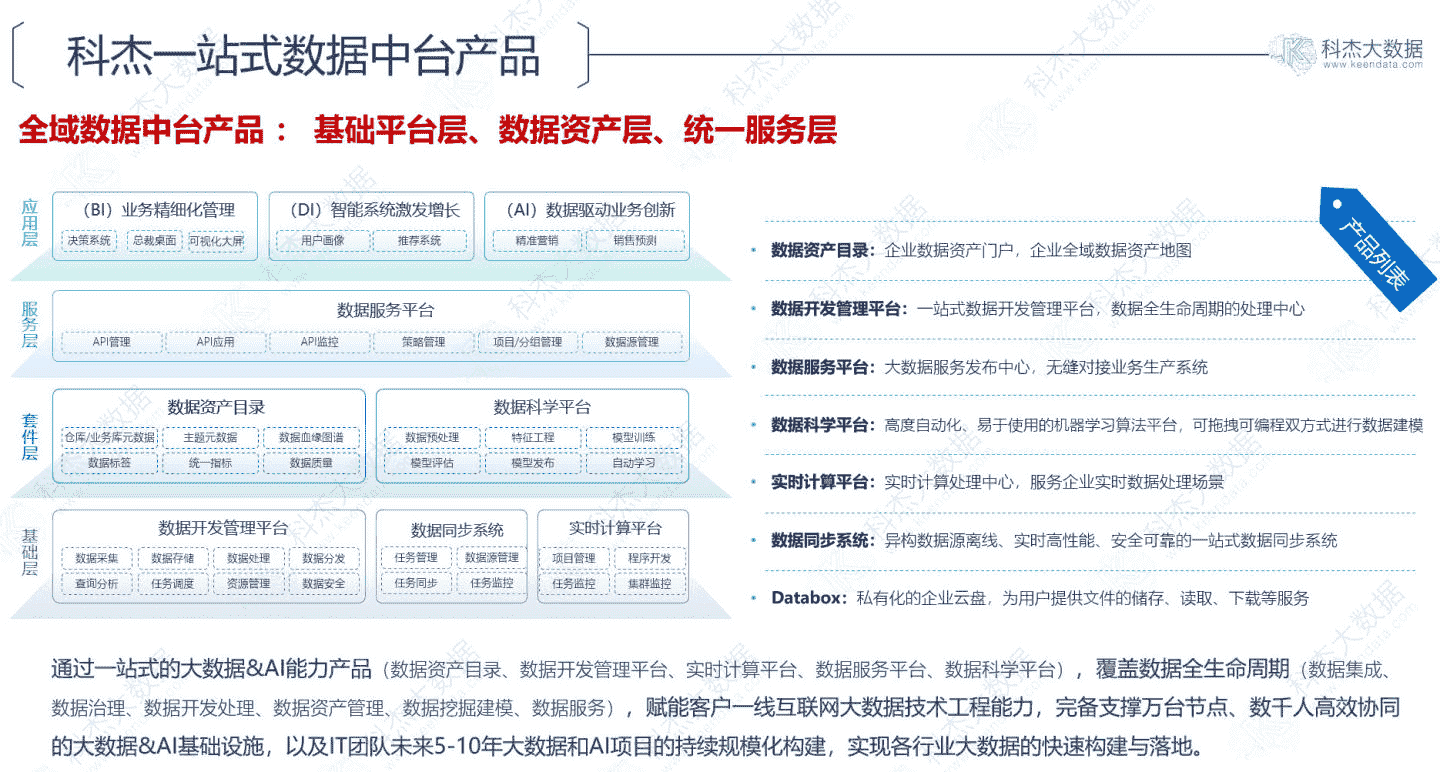3、科杰大数据解决方案与数据中台产品矩阵