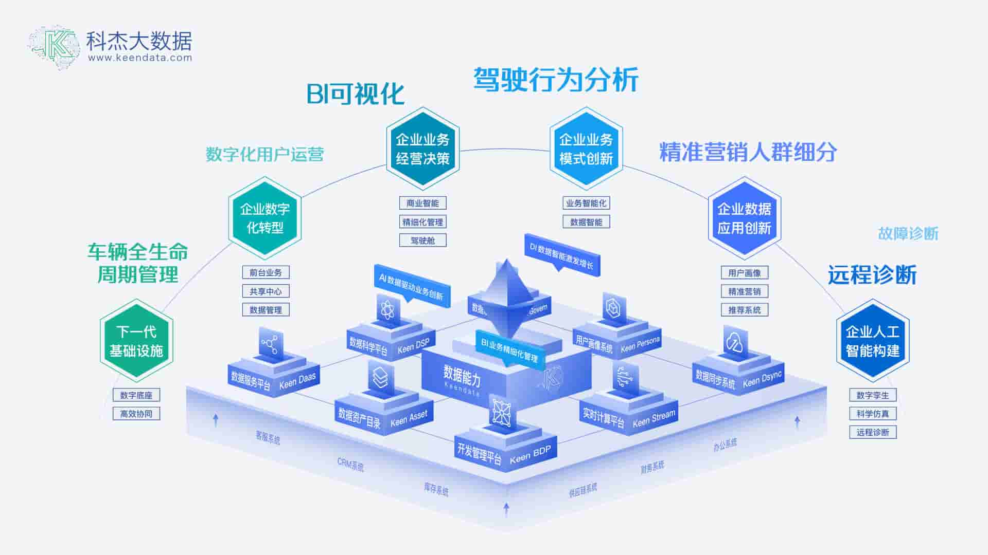 同时,科杰数据中台赋能业务场景的创新升级,在车辆全生命周期管理、数字化用户运营、BI可视化、驾驶行为分析、精准营销人群细分、远程故障诊断等场景上,提供了强大的数据支撑能力和数据价值驱动。