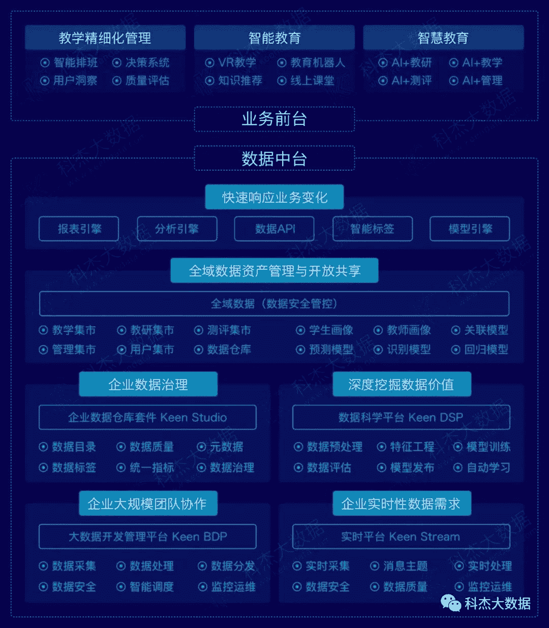 以教育行业为例,知名教育机构新东方在2019年就启动了数据中台的建设,通过科杰大数据的新一代大数据基础设施实现体系化的数据中台构建。