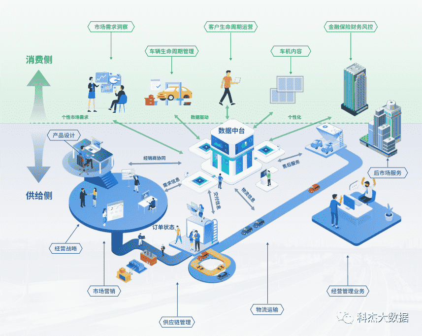 科杰大数据以新一代大数据基础设施构建车企数字化转型核心引擎,打通供给侧和消费侧全链条数据的统一汇聚。面向供给侧,指导产品设计、生产研发和市场营销及后市场服务;面向消费侧,基于数据构建统一的用户画像、车辆画像,提升消费侧用户体验。同时,在车辆全生命周期管理、数字化用户运营、BI可视化、驾驶行为分析、精准营销人群细分、远程故障诊断等场景上,提供了强大的数据支撑能力和数据价值驱动。