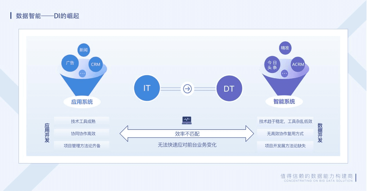 在数据智能(DI)类项目方面,企业则需要建设一站式全流程的大数据&AI基础设施,实现数据项目的大规模高效协同开展,加速全线系统的数据智能构建,在数据智能引领下实现企业的增长和业务的创新。