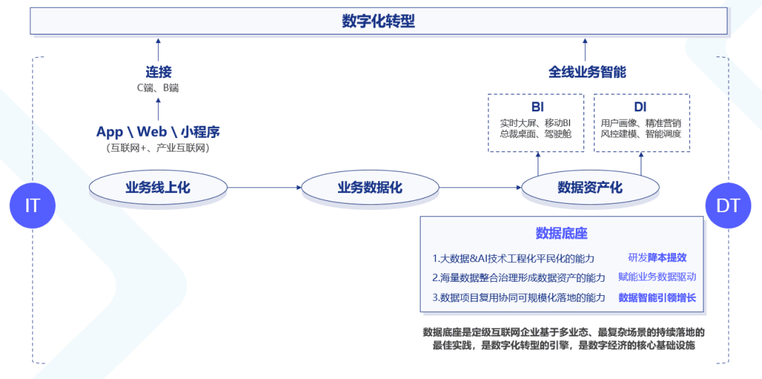 企业发展已经由传统的IT信息技术为支撑,逐渐向以数据价值驱动业务DT模式的转变,依托企业级数据底座能力,可以支持企业未来5-10年大数据和AI项目的协同开展。那么到底什么是数据底座,基于数据底座如何进行企业的数字化转型?