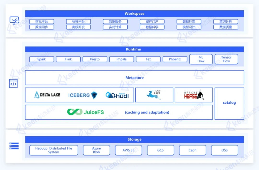 支持AWS S3、OSS、Azure Blob等多种存储介质,应对不同场景下的存储需求,如AWS S3,它可以存储二进制为基础的任何信息,包含结构化和非结构化的数据;如OSS存储,支持图片和音视频等应用的海量存储、网页或者移动应用的静态和动态资源分离或云端数据处理;科杰科技数据湖存储技术可以轻松面对应用对稳定性、扩展性、可用性等多样化的存储要求,以及物理硬件的复杂性;