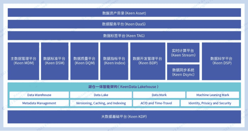 基于科杰科技数据底座产品KeenData Lakehouse的服务能力,支撑上层包括营销主题报表、业绩分析、风控系统以及反洗钱项目等数据应用建设,赋能客户一线互联网大数据技术工程能力,完备支撑万台节点、数千人高效协同的大数据&AI基础设施,以及金融企业未来5-10年大数据和AI项目的持续规模化构建,实现金融行业数据能力的快速构建与落地,满足金融行业国产化信创需求。