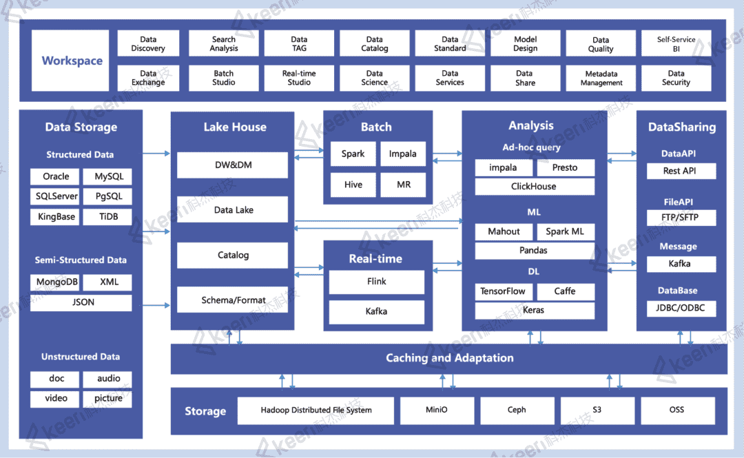 科杰科技致力自主可控的大数据底座软件产品建设,基于云原生、低代码、一站式湖仓一体数据智能平台KeenData Lakehouse,为企业提供数据管理、开发挖掘、运维一体化的整套方案。科杰科技经过多年的技术沉淀,积累了湖仓一体、多架构统一纳管、多模数据处理、DataOps、Data Fabric、Active Metadata Management、Data Mesh等十余项行业领先的核心技术。