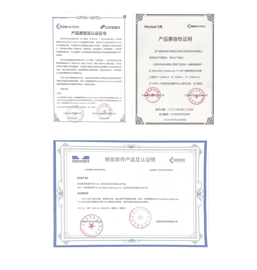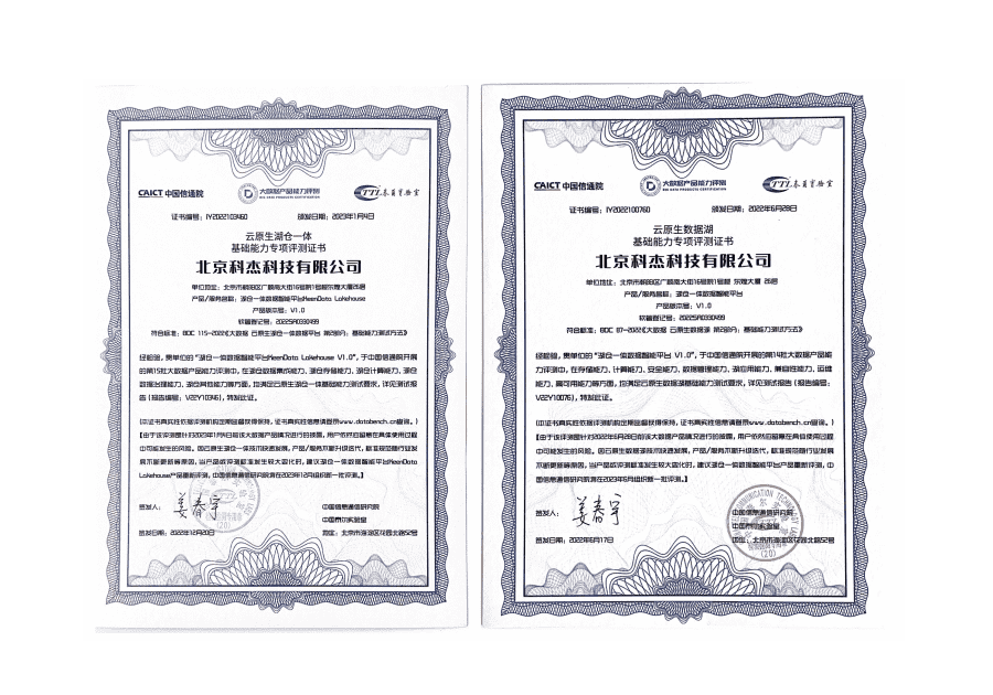 此外,科杰科技积极参与《企业数智化能力成熟度模型(EDMM)》、DataOps、数据中台、湖仓一体的讨论与技术标准制定工作,以切身实际行动不断优化信创环境,促进数字技术在全生态的创新应用与推广,首批通过中国信通院云原生数据湖能力评测以及云原生湖仓一体评测,以领先的技术能力、完善的数据底座产品矩阵以及丰富的落地经验,引领国产数据基础软件行业发展,赋能数字中国建设。