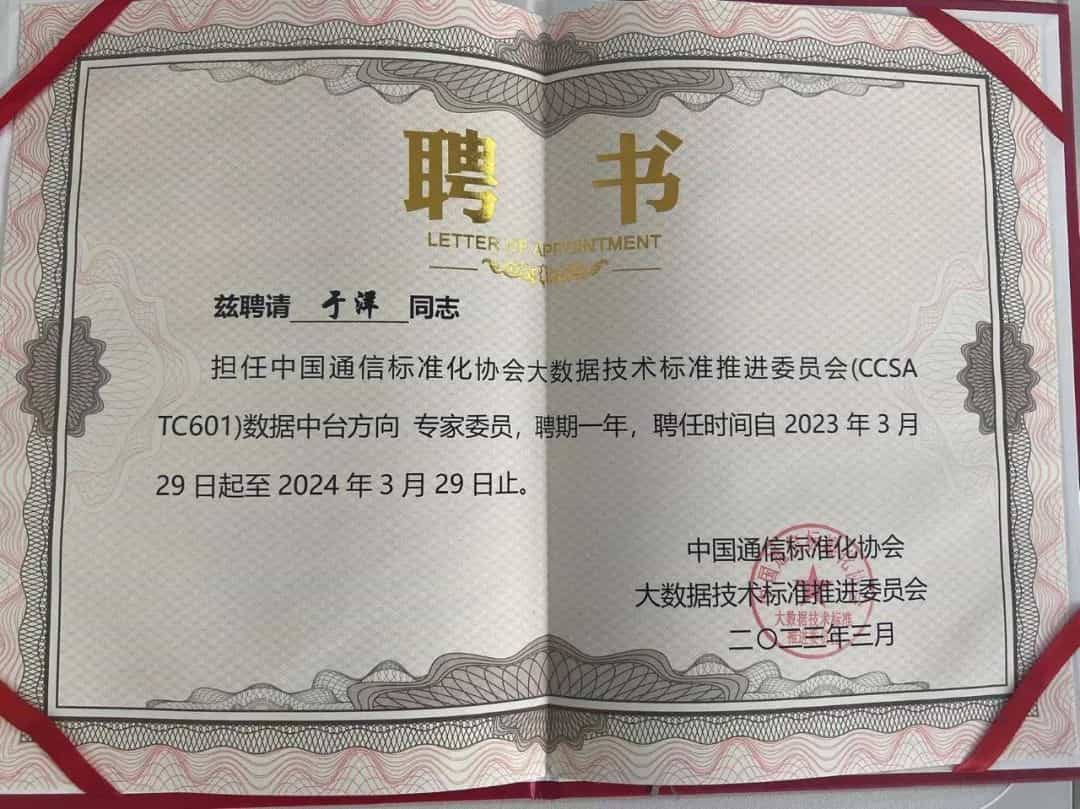 近日,中国通信标准化协会大数据技术标准推进委员会(以下简称“CCSA TC601”)在杭州召开2023年第一次全体工作会议,会议表彰了2022年度CCSA TC601优秀成员单位和突出贡献专家,科杰科技创始人&CEO于洋受聘数据中台专家。