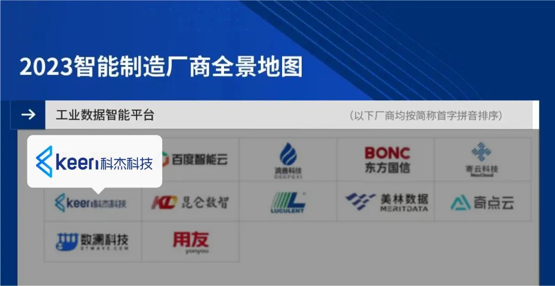 智能制造基于新一代信息技术,贯穿研发设计、生产制造、营销运维等制造活动的多个环节,以智能工厂为载体,关键制造环节智能化为核心,端到端数据流为基础,通过降本增效,实现从“制造”到“智造”的转变。近日,国内数字化市场研究咨询机构爱分析发布了《2023爱分析·智能制造厂商全景报告》,综合考虑企业需求、关注度等因素,选取其中2个特定市场进行重点分析,通过对各特定市场的需求分析和代表厂商的能力解读,科杰科技依托自身在大数据基础平台的科技创新入选工业数据智能平台板块,彰显出技术创新实力和行业认可度。