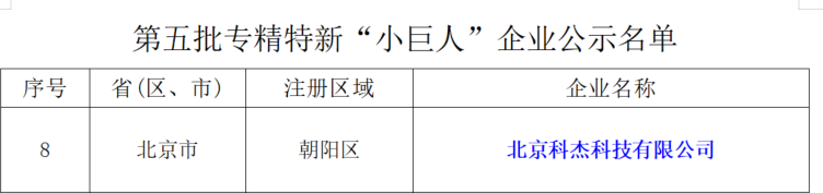 近日,北京市经济和信息化局发布了工业和信息化部组织的第五批专精特新“小巨人”企业公示名单,科杰科技凭借着在大数据基础软件技术、产品以及服务等方面的优势,入选国家级专精特新“小巨人”企业,这是科杰科技被评为专精特新中小企业之后,再获殊荣。