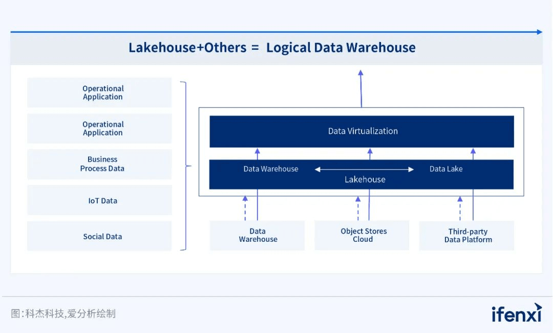 考虑到湖仓一体的落地实践,科杰科技认为,湖仓一体除具备最先进湖仓融合引擎外,还需要具备对企业过往技术栈的兼容纳管能力。当前很多企业数据能力建设不是从 0 到 1 ——从头开始构建,而是从 1 到 N ——对现有能力的进一步提升,如金融行业在对既有 Data Warehouse、Data Lake 技术栈进行升级时,考虑到数据迁移的巨大成本和原有架构效能的持续发挥,不支持数据的大规模迁移,这意味着湖仓一体不仅不能彻底替换企业旧有的数据架构,还需要充分“利旧”、实现既有建设成果的复用。