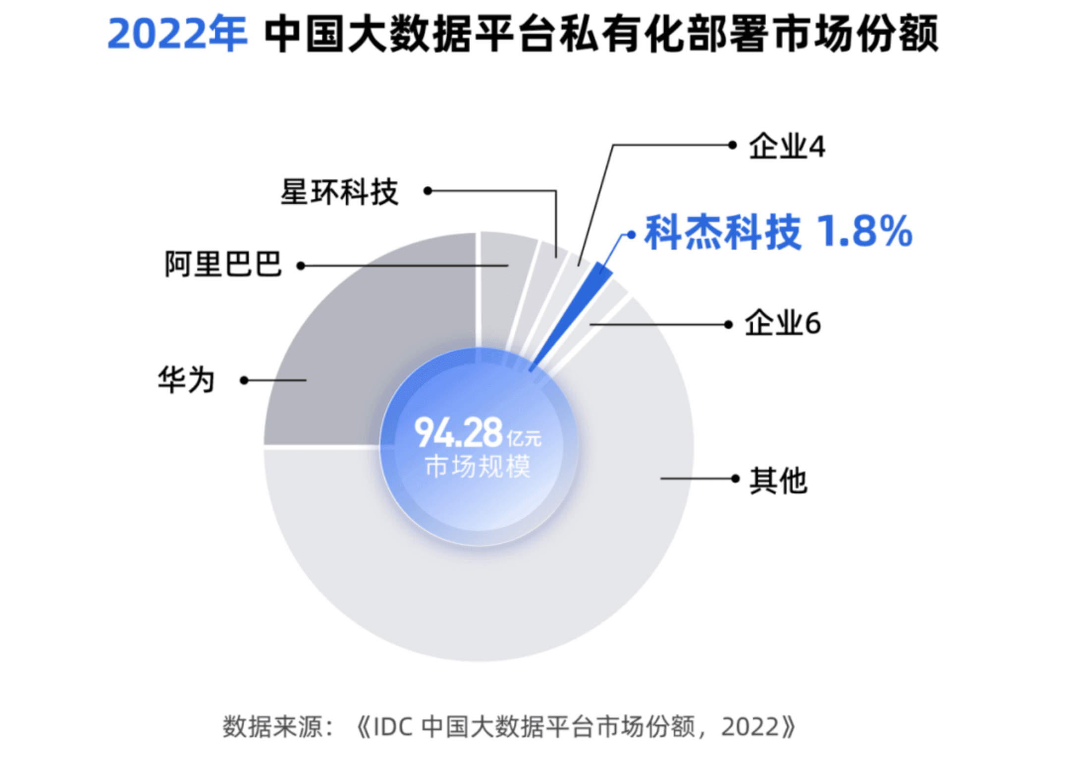比如做私有化部署市场的科杰科技,创办于2019年,仅仅三四年的时间,就凭借着自己的技术创新能力,在行业崭露头角成为国家级高科技专精特新“小巨人”企业。近期IDC发布的2022年大数据市场平台份额,科杰科技成功跻身于TOP5厂商。