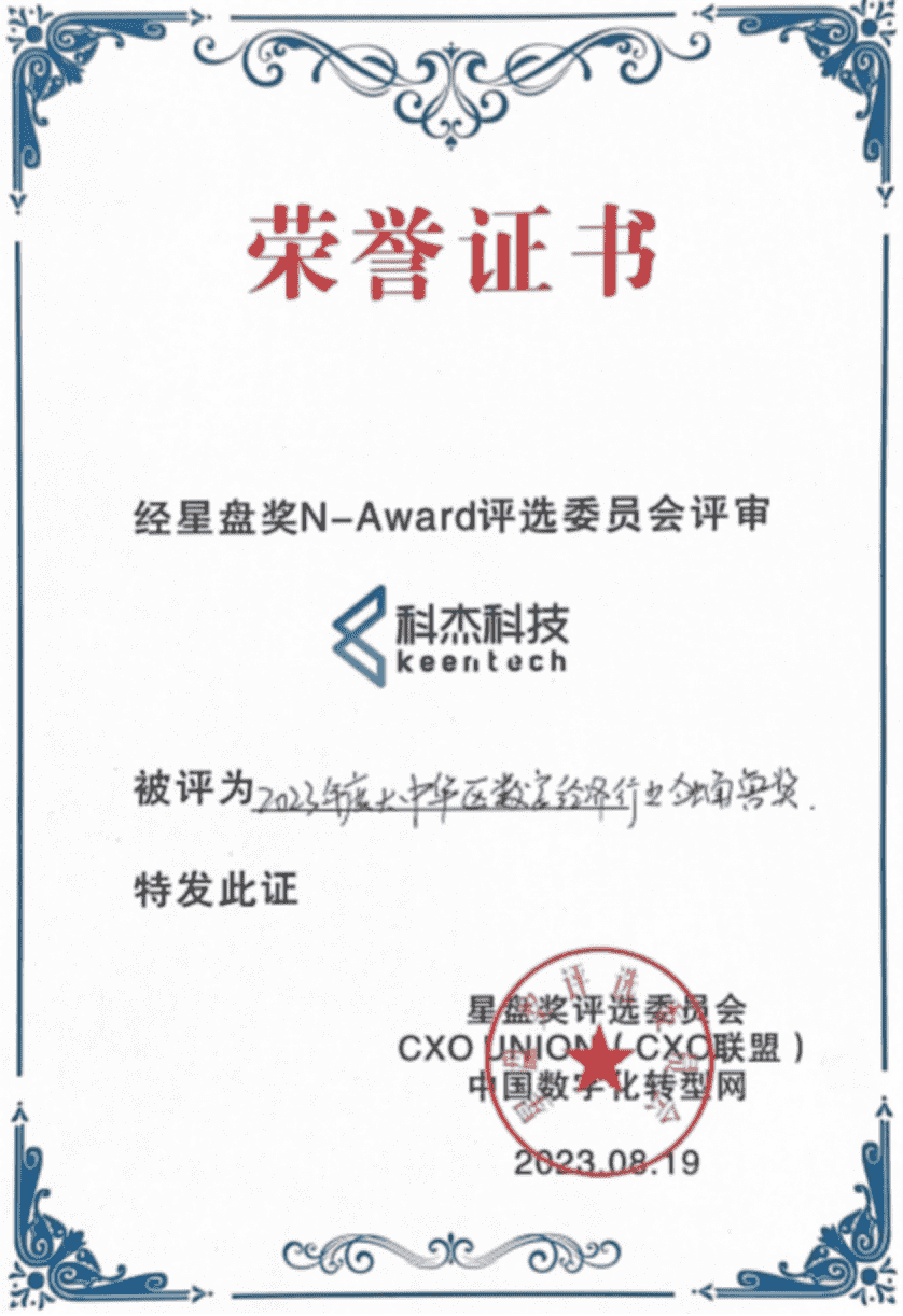 第五届华东CIO大会&2023数字化转型展在安徽黄山召开,本次大会以“重建信心、重构观念、重启变革”为核心主题词,共同交流与探讨管理创新&数字化转型。科杰科技凭借在数字经济行业的创新成就和领先优势,以及在成长潜力、融资能力、盈利速度等多维度的亮眼表现,成功获得数字经济行业独角兽奖。