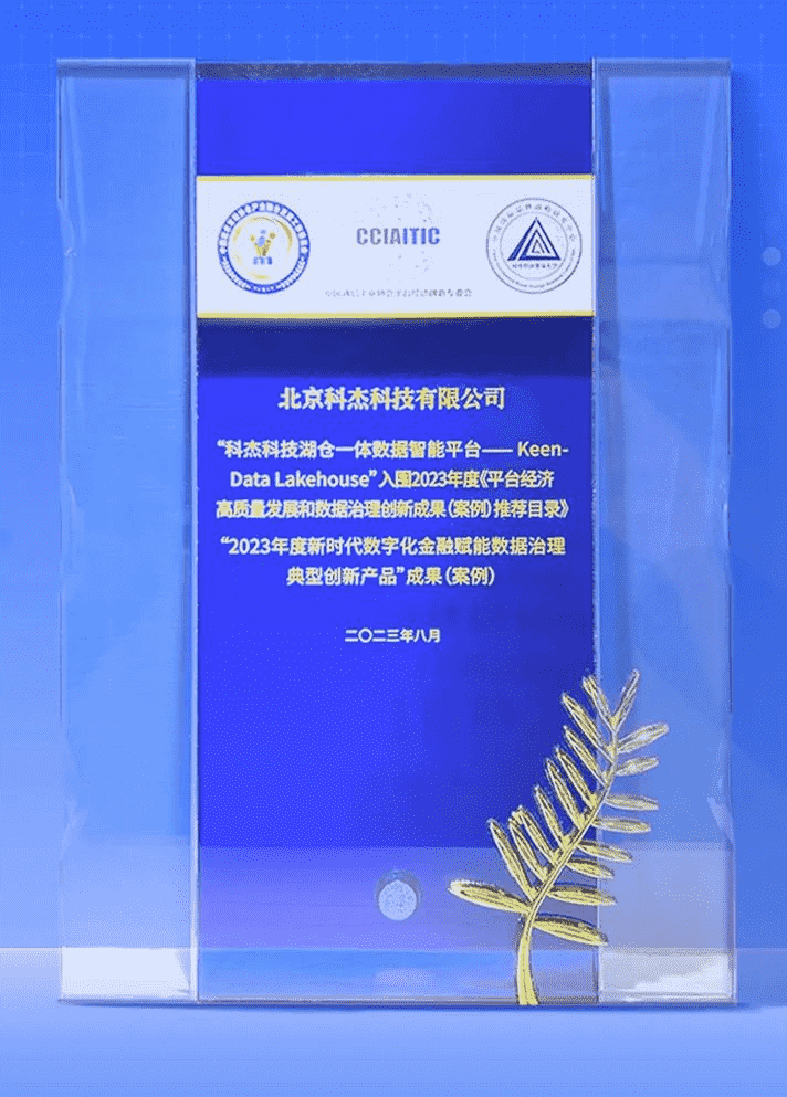 近日,科杰科技湖仓一体数据智能平台KeenData Lakehouse和科杰科技金融行业数据底座解决方案同时入围2023年度《平台经济高质量发展和数据治理创新成果(案例)推荐目录》和2023年度新时代数字化金融赋能数据治理典型创新产品成果(案例)。