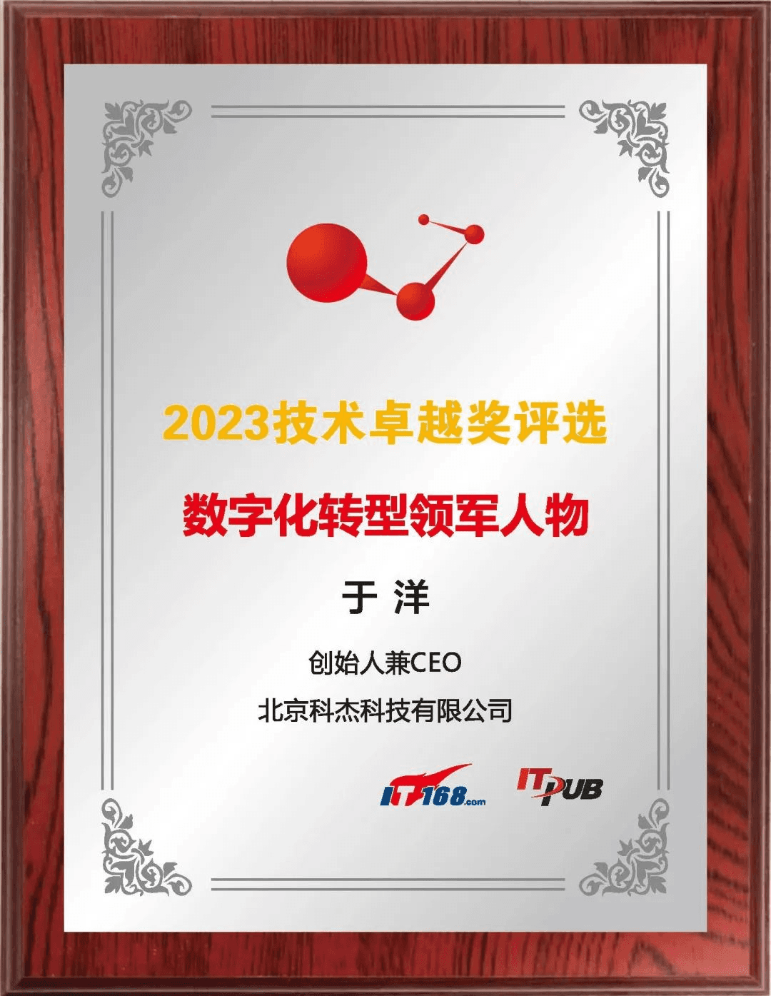 国内知名垂直门户媒体IT168公布“2023年度IT168技术卓越奖”评选结果,科杰科技创始人兼CEO于洋获评“数字化转型领军人物”。