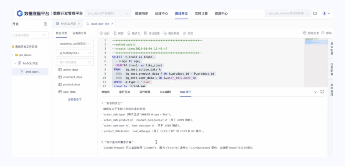 Provides one-stop development experience with unified data resources, unified development process, and unified intelligent scheduling; supports online collaboration and development of large-scale projects across different users, teams, and projects.