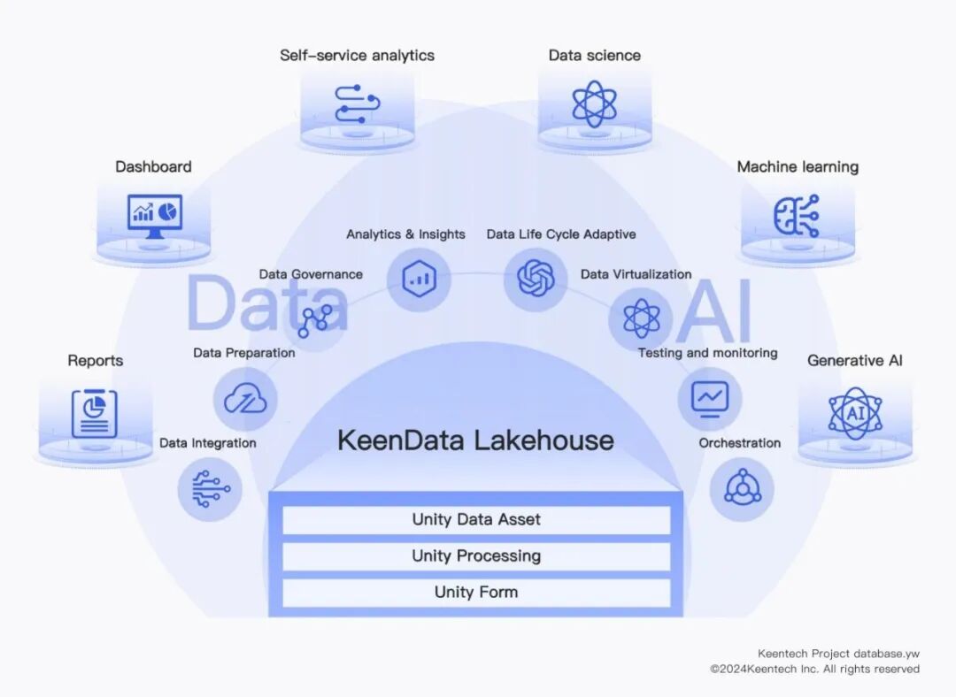 Relying on practical experience with over 100 leading domestic customers, KeenData's Data&AI industry implementation achievements have attracted much attention. KeenData, with "All-in-One" strategy as the core, has built an integrated capability platform covering data governance, asset management, analysis modeling, AI development and services. In practical applications, KeenData's Lakehouse data intelligence platform KeenData Lakehouse has empowered 200+ large organizations in digital transformation and upgrading.