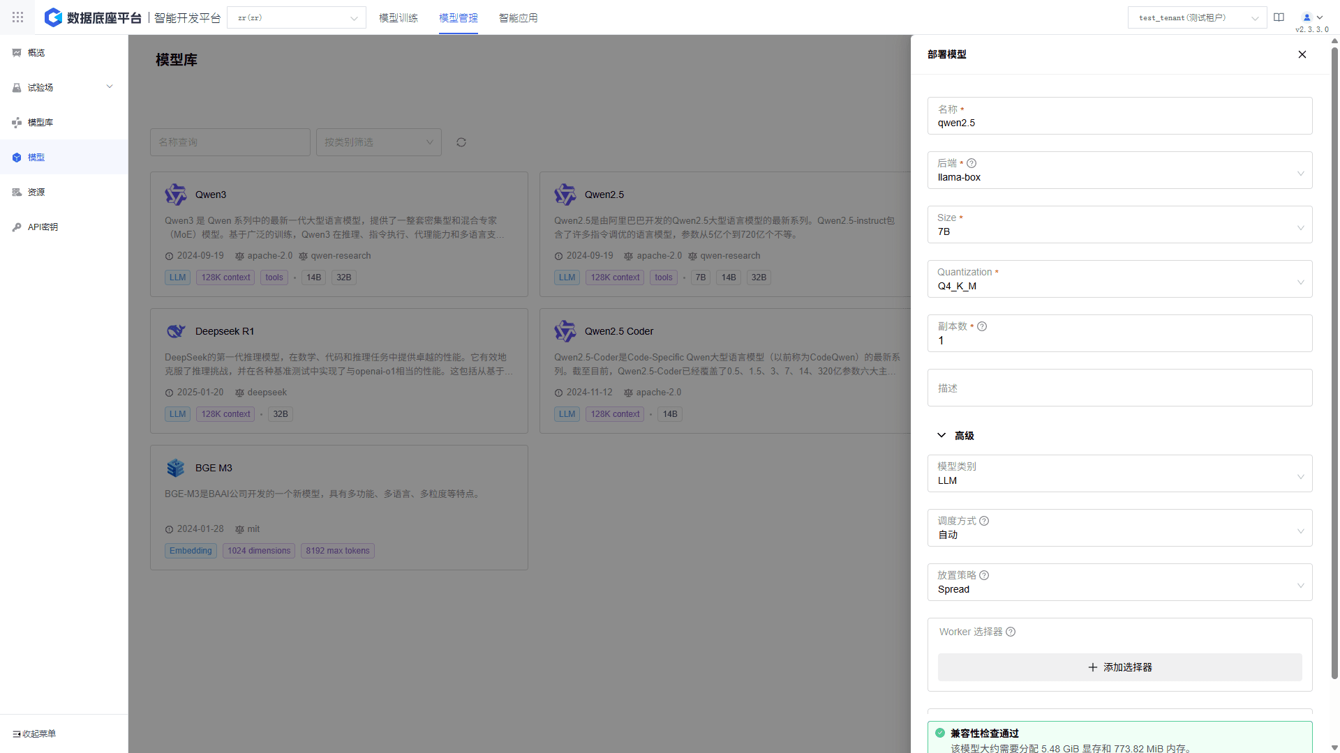 Supports quick selection from built-in model libraries or local model uploads, with adjustable deployment parameters and instance configurations to meet diverse business needs.