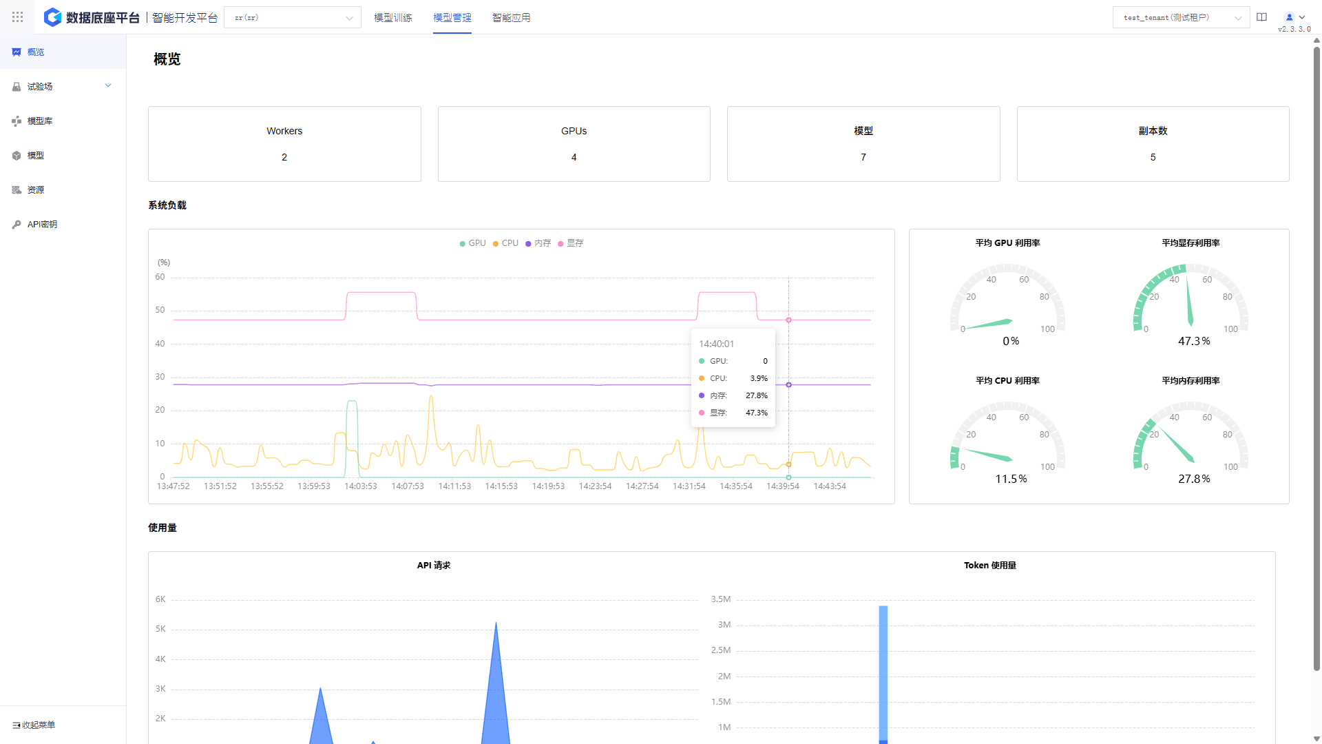 Visualizes key metrics such as system load, API calls, and response latency in real time, offering multi-dimensional analytics to support operational decisions and performance optimization.